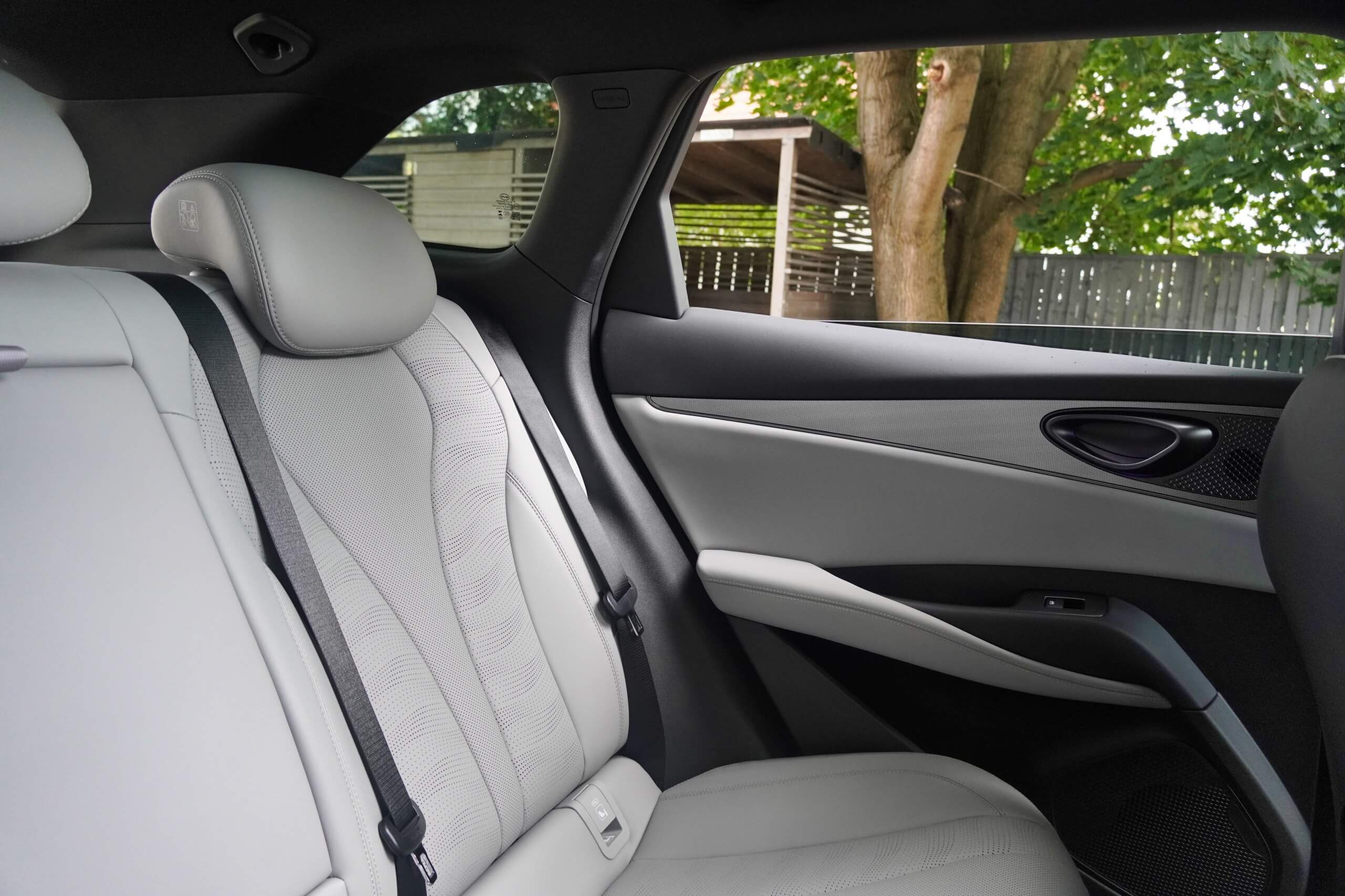Miejsca jest naprawdę sporo i porównanie BYD Seal 6 DM-i z Passatem to nie marketingowy zabieg, a prawdzie poczucie przestrzeni. Przestrzeń tą potęgowało duże okno dachowe, które ma kilka zaprogramowanych stopni otwarcia rolety jak i samego okna. Nie miałem żadnego problemu z instalacją fotelika w jednym z trzech miejsc iso-fix, czy zapakowaniem rodziny na małą przejażdżkę wokół miasta. Wszyscy mieli wystarczająco miejsca, nawet gdy samemu przesiadłem się na tylny rząd siedzeń.