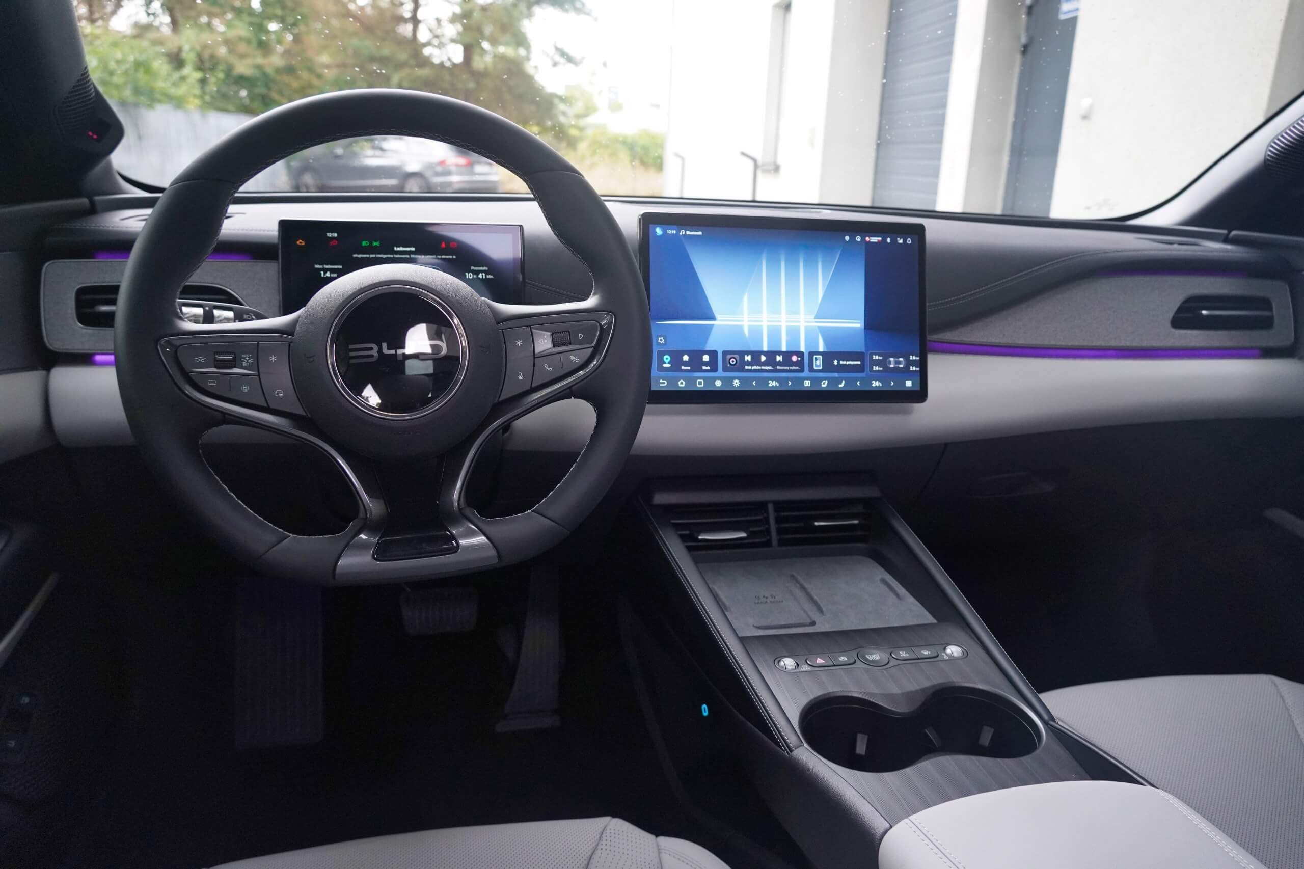 Moim zdaniem niezależnie co wybierzecie, będzie to poziom, który was zadowoli. Fotele są bowiem wygodne, a deska jest zaprojektowana z wyrazistą linią, która płynnie łączy się z drzwiami. Podobnie jak w Seal U DM-i, który również testowałem, można poczuć, że zespół odpowiadający za design wnętrza tworzył go z myślą o tym aucie. Wszystko nie dość, że robi dobre wrażenie i jest dobrze wykonane, to jeszcze sprawia wrażenie przemyślanego i atrakcyjnego. Można mieć nawet wrażenie, że inspirację BYD czerpie od najlepszych w swoim fachu Włochów, ponieważ tak spójnego i ciekawego wnętrza nie widuje się w niemieckich „autach dla ludu”.