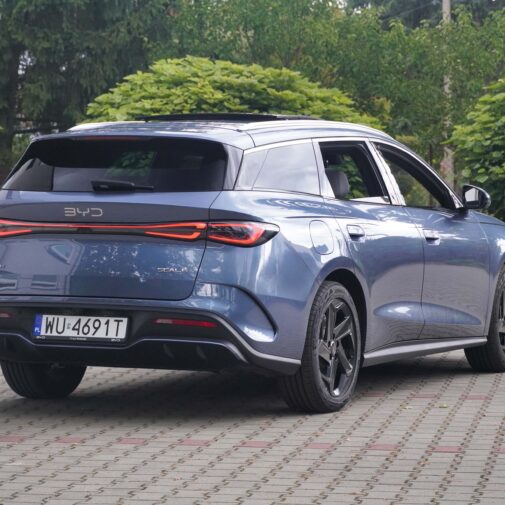Zacznijmy od tego co najważniejsze, czyli fakt, że w ofercie BYD w końcu możemy wybrać bardzo praktyczne nadwozie typu combi/touring o pojemności bagażnika 675 l (mierząc powyżej linii rolety bagażnika) albo 1535 l po złożeniu foteli. W ofercie jest również sedan, ale wydaje mi się on zdecydowanie mniej interesujący za sprawą innego sedana w ofercie –  Seal 5 DM-i.