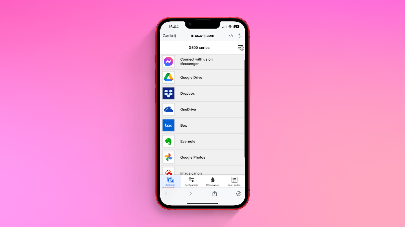 Canon udostępnia dla swoich produktów perfekcyjną aplikację Canon PRINT na smartfony z iOS oraz Android. Daje ona dostęp do pełnej obsługi sprzętu oraz dodatkowych funkcji druku i powiązanych usług.
