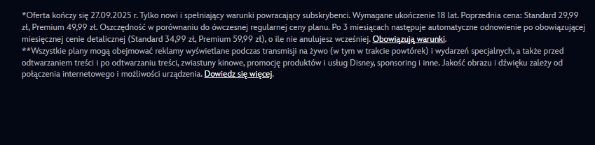 Disney Plus rok temu wprowadził interesującą promocję. W jej ramach nowi i powracający klienci mogli uzyskać dostęp do biblioteki filmów i seriali za jedyne 9,99 zł/miesiąc. I podobnie jest teraz. Jeszcze do 27 września 2025 roku można skorzystać z takiej samej oferty. Przez trzy miesiące – nie ukrywajmy, że tak jest – będziemy płacić grosze, aby potem zapłacić więcej.