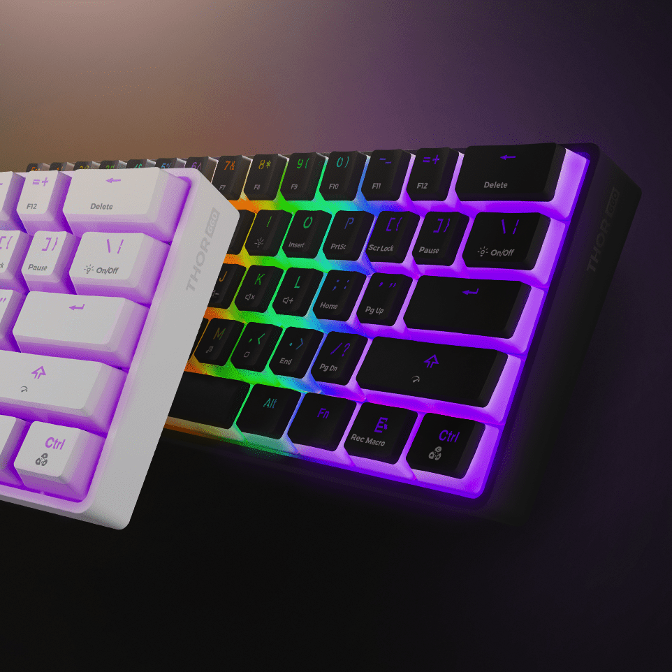W klawiaturze mamy przełączniki Gateron Red, keycapy (nasadki klawiszy) to Pudding PBT, których zadaniem jest jeszcze bardziej uwypuklić charakterystyczne kolory podświetlenia. Oczywiście dla mnie to totalny oczopląs i pewnie średnio mógłbym się skupić na pracy, mając takie cudo pod palcami, ale absolutnie rozumiem, że nie jestem właściwym odbiorcom tego produktu. Dodatkowo w Thor 660 możemy wybrać jeden aż z 19 trybów podświetlenia RGB i podpiąć do trzech urządzeń poprzez Bluetooth.