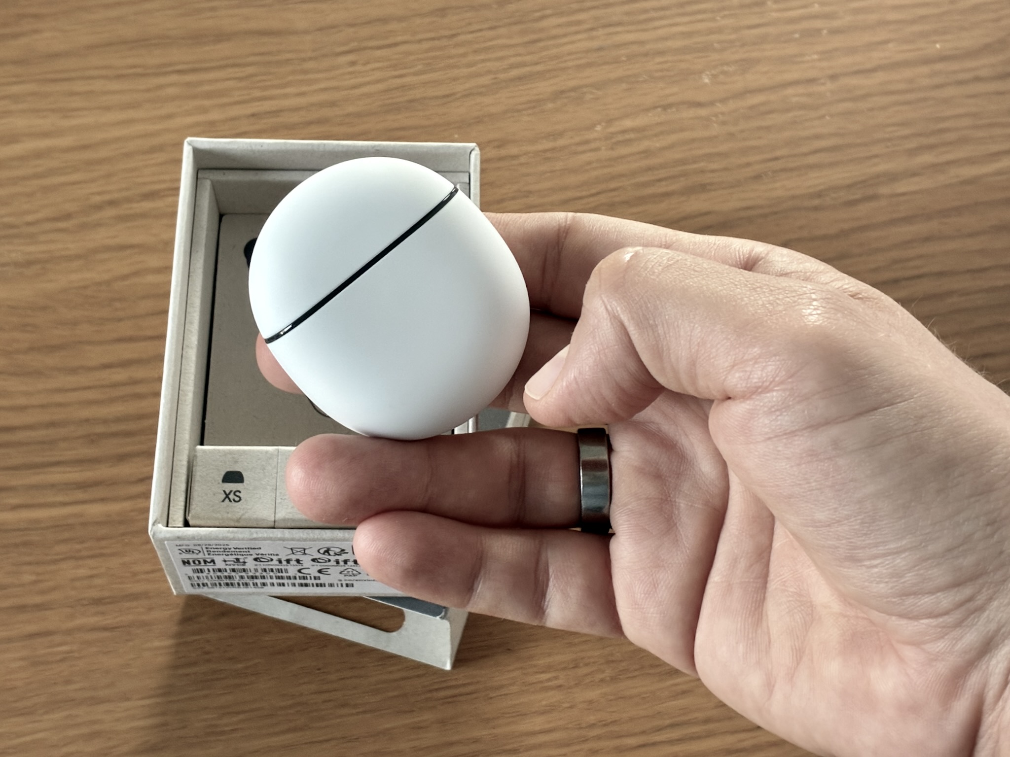 Wewnątrz znajduje się tylko to, co niezbędne, a więc etui ładujące, słuchawki i komplet wkładek dousznych w 4 rozmiarach. Pchełki mają domyślnie założony rozmiar M, a w oddzielnych mikro pudełkach umieszczono gumki XS, S, oraz L. Sposób zapakowania tych drobnych akcesoriów bardzo mi się spodobał i przywiódł mi na myśl kartoniki na figurki postaci gier planszowych. Kolejne miłe skojarzenie. Białe, wykończone matową powłoką etui ładujące owinięto papierową imitacją folii, ale to, co przede wszystkim zwróciło moją uwagę to fakt, że case nie ma na sobie żadnego napisu. Tak, ani jednego logotypu, oznaczeń CE, RoHS, UKCA i całej masy innych ikon, które zazwyczaj ozdabiają elektronikę. To się nazywa minimalizm!