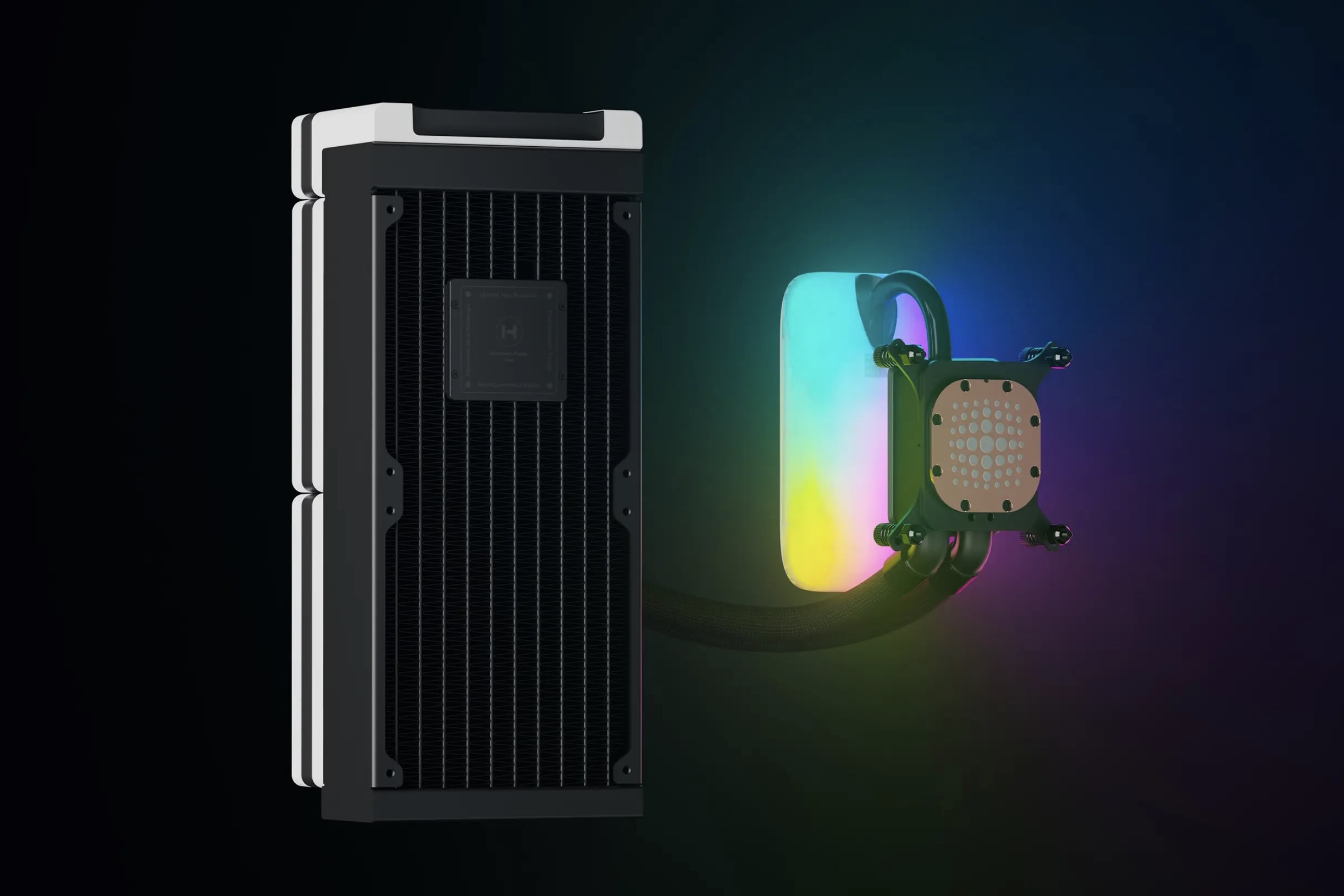HYTE chwali się tu układem podwójnych pomp, które działają harmonicznie i wyposażone są w ceramiczne łożyska. Wymiennik ciepła ma być stworzony z materiałów klasy lotniczej, co ma się przekładać się na ogromną wydajność i być jednym z najcichszych układów tego typu na rynku. Do produkcji użyto dwóch wentylatorów THICC FP12 z łopatkami o średnicy 32 mm, które stworzono z polimerów ciekłokrystalicznych (wzmocnionych włóknem szklanym). Ma się to wyróżniać niesamowitą sztywnością, odpornością i polepszać właściwości aerodynamiczne. Mogą być one dynamicznie regulowane w zakresie 0 – 3,000 RPM. Całość pozwala na uzyskanie maksymalnego przepływu powietrza na poziomie 105,8 CFM i wywiera ciśnienie statyczne na poziomie 8,14 mmH2O – co faktycznie wydaje się być nieprzyzwoicie dobrymi wartościami.