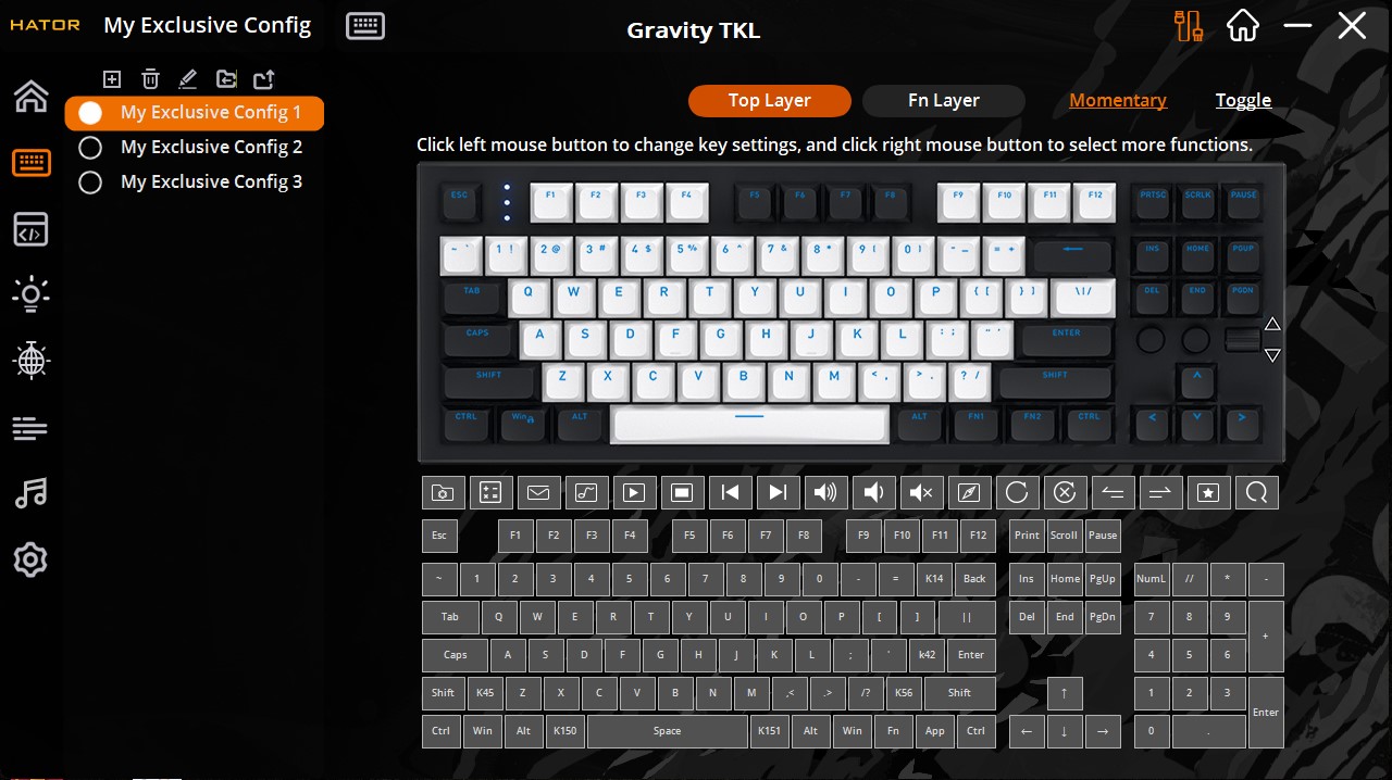 Zaczniemy od klawiatury mechanicznej. Model HATOR Gravity TKL to tylko jeden z „mechaników”, dostępny u producenta. W samym wyglądzie zabrakło koloru żółtego. Klawiatura jest czarna i mieni się wieloma innymi kolorami. Nie tylko klawisze są podświetlane, ale również boki sprzętu.