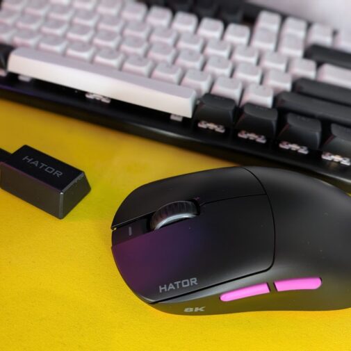 Kolejnym sprzętem, który podłączyłem od razu pod mojego PC-a była mysz gamingowa HATOR Quasar 3 ULTRA 8K+8K. W zasadzie nie potrzebowałem zastępstwa, ale zdecydowanie nie zamierzam tego akcesorium zmieniać. W połączeniu z podkładką pod mysz Tonn Evo daje nam świetny ślizg, a specyfikacja jest tu naprawdę topowa.