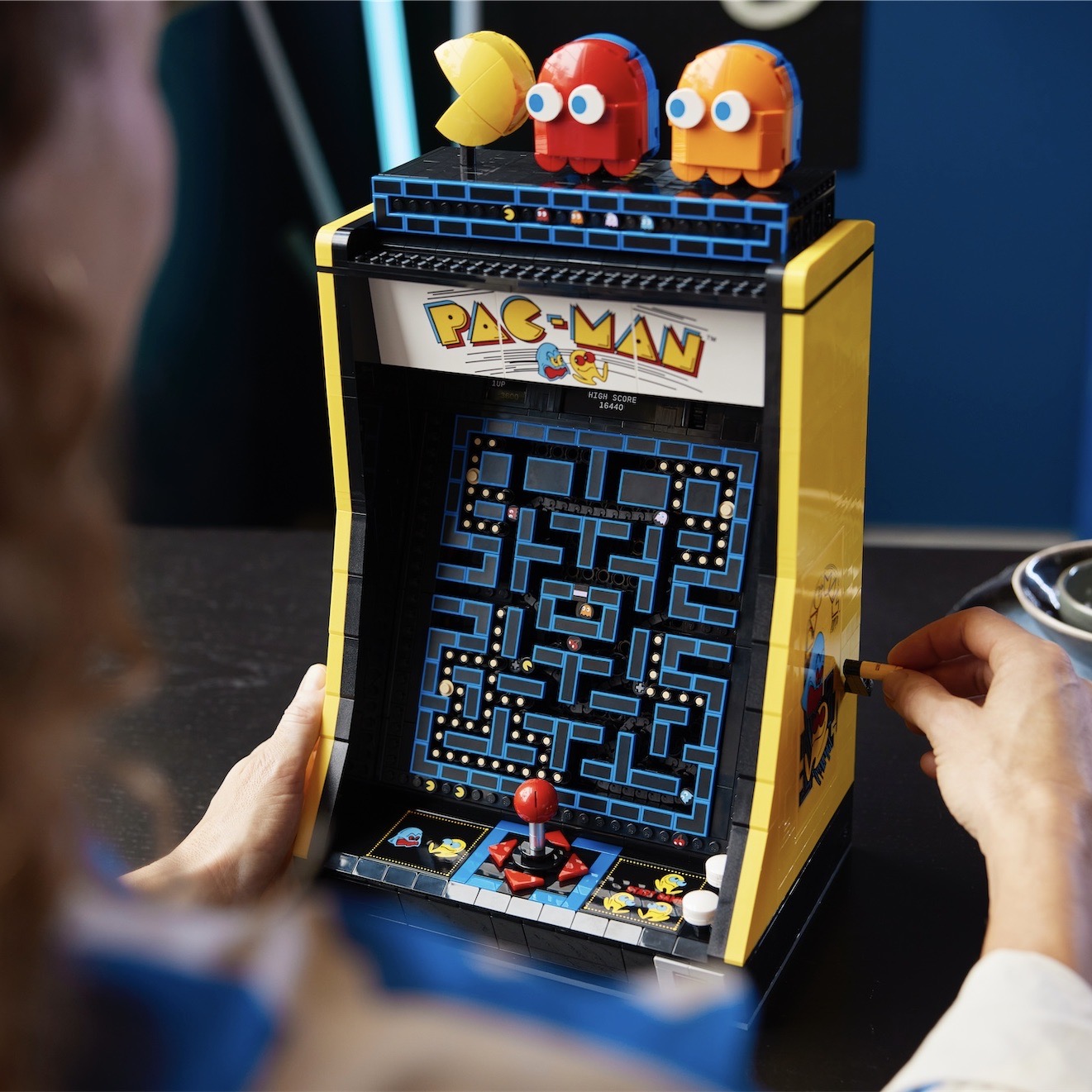 Oczywiście automat nie jest działającą grą z ekranem. Mimo to otrzymał kilka niespodzianek, jak świecący klocek, który oświetla slot do wrzucania monet, ruchoma korba, która symuluje ruch Pac-Mana oraz Blinky’ego i Clyde’a. Dodatkowo automat ma otwieraną tylną klapę i miejsce na dodatkową mini scenkę z automatem i minifigurką.