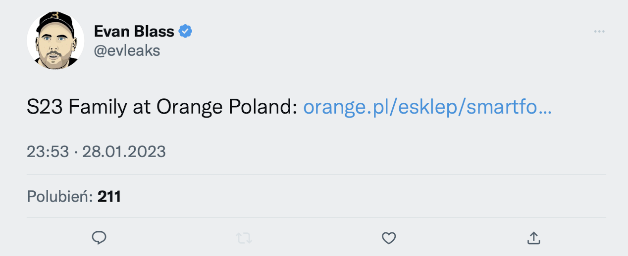 Spokojny sobotni wieczór zamienił się w niektórych miejscach w prawdziwe piekło. Znany Twitterowy leaker Evan Blass wrzucił na swoim koncie linka do polskiej strony Orange, na której najpewniej przez niedopatrzenie pojawiły się (najpewniej) ceny Samsungów Galaxy S23. Mamy też pełną specyfikację!