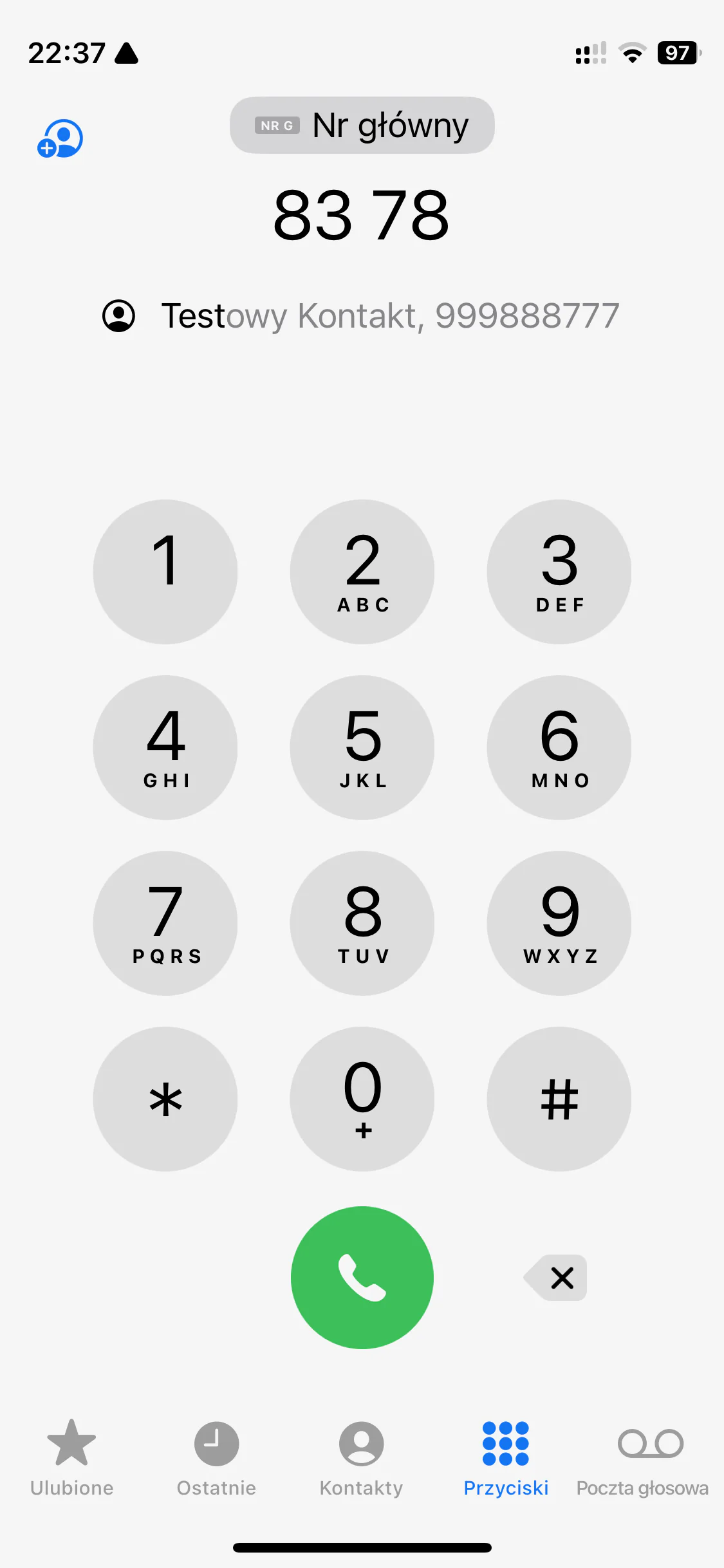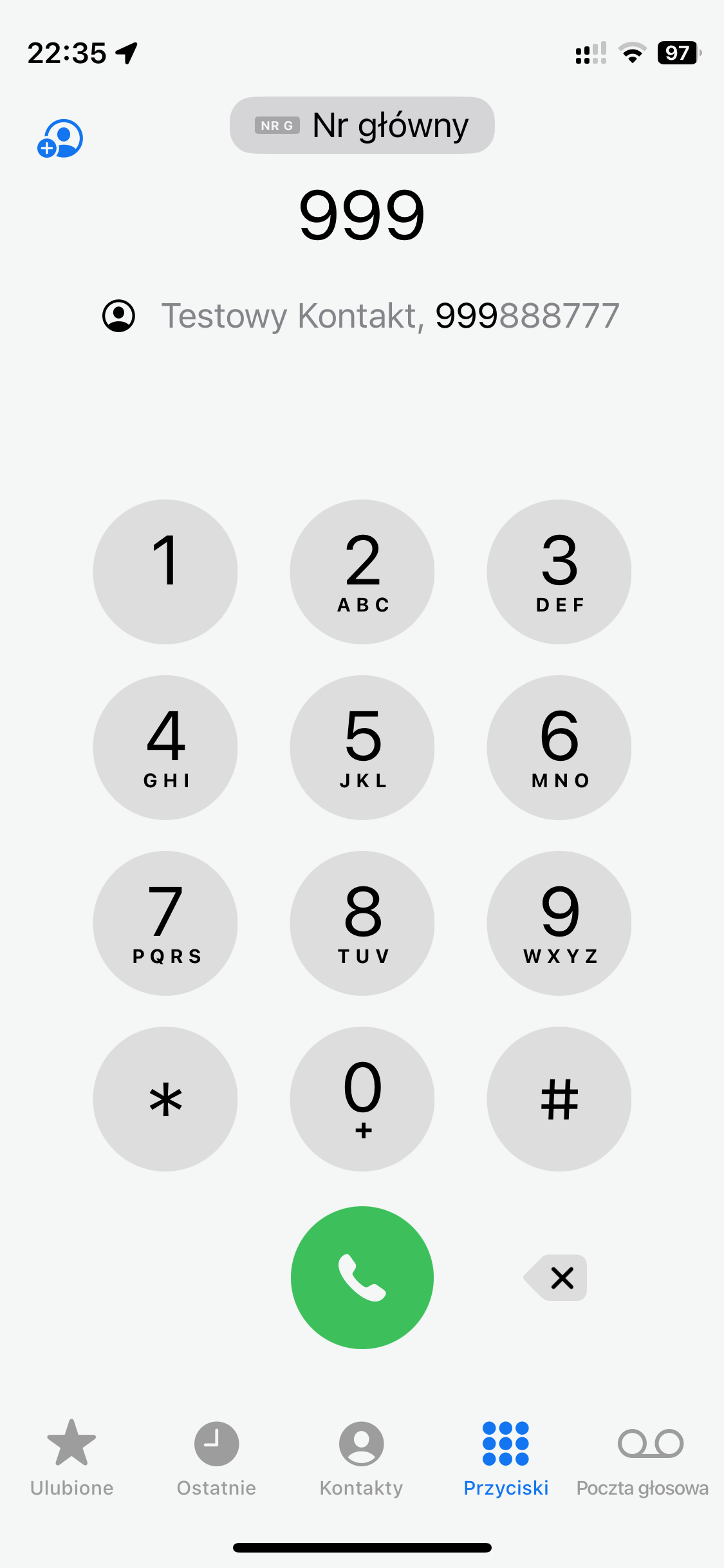 Aż trudno uwierzyć, że na tę funkcję trzeba było czekać kilkanaście lat! Możliwość znalezienia kontaktu na podstawie wpisanego numeru telefonu powinna była znaleźć się w iOS już dawno temu, ale lepiej późno niż wcale. Funkcja polega na tym, że gdy na ekranie dialera wpiszecie numer telefonu, odfiltrowane zostaną kontakty i wpis zawierający ten numer pojawi się jako podpowiedź. Przykładowo, mając zdefiniowany numer 999 888 777 jako „Testowy Kontakt”, zobaczę jego nazwę, gdy wybiorę 999. Co więcej, ten sam kontakt zostanie odnaleziony jeśli na klawiaturze wpiszę 8378, co odpowiada literom TEST.