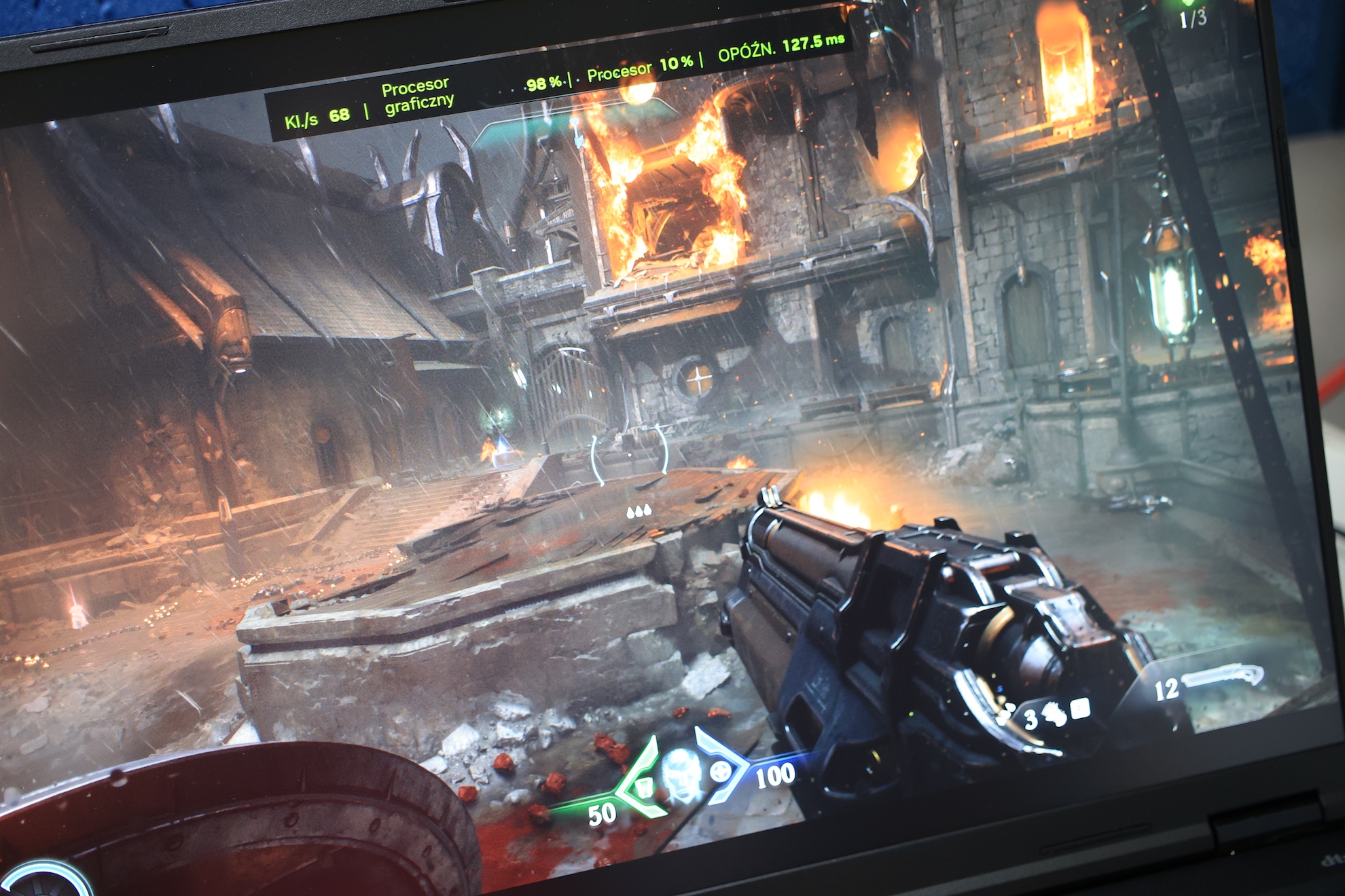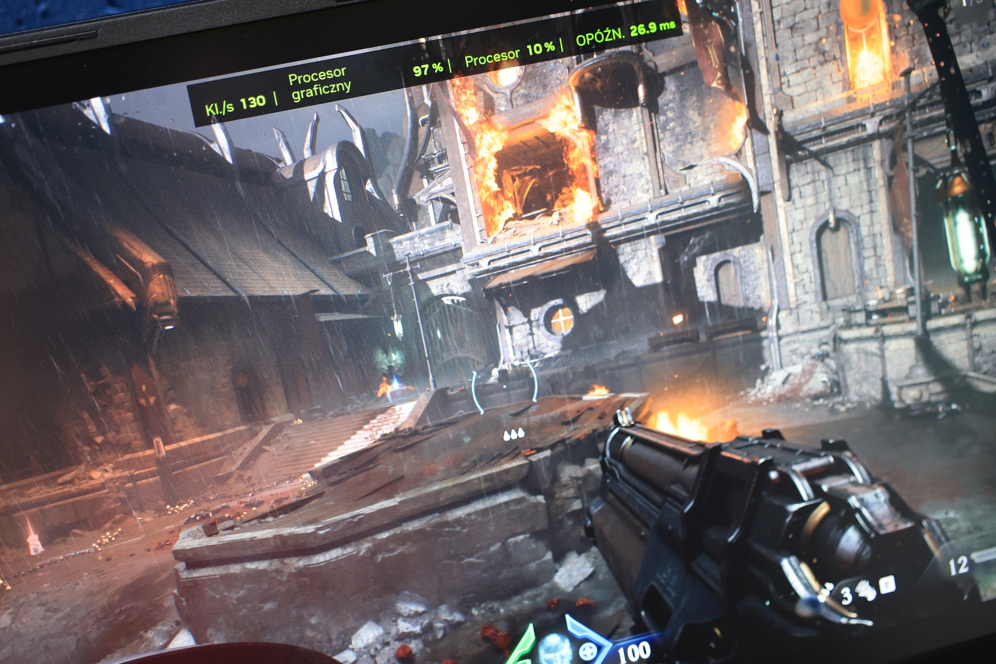 Podczas rozgrywki w DOOM: The Dark Ages ustawiłem parametry na „ultra”, a rozdzielczość na najwyższą. Dzięki DLSS 4 mogłem cieszyć się zamiast standardowych 30-35 FPS nawet 130 FPS (DLSS 4x).