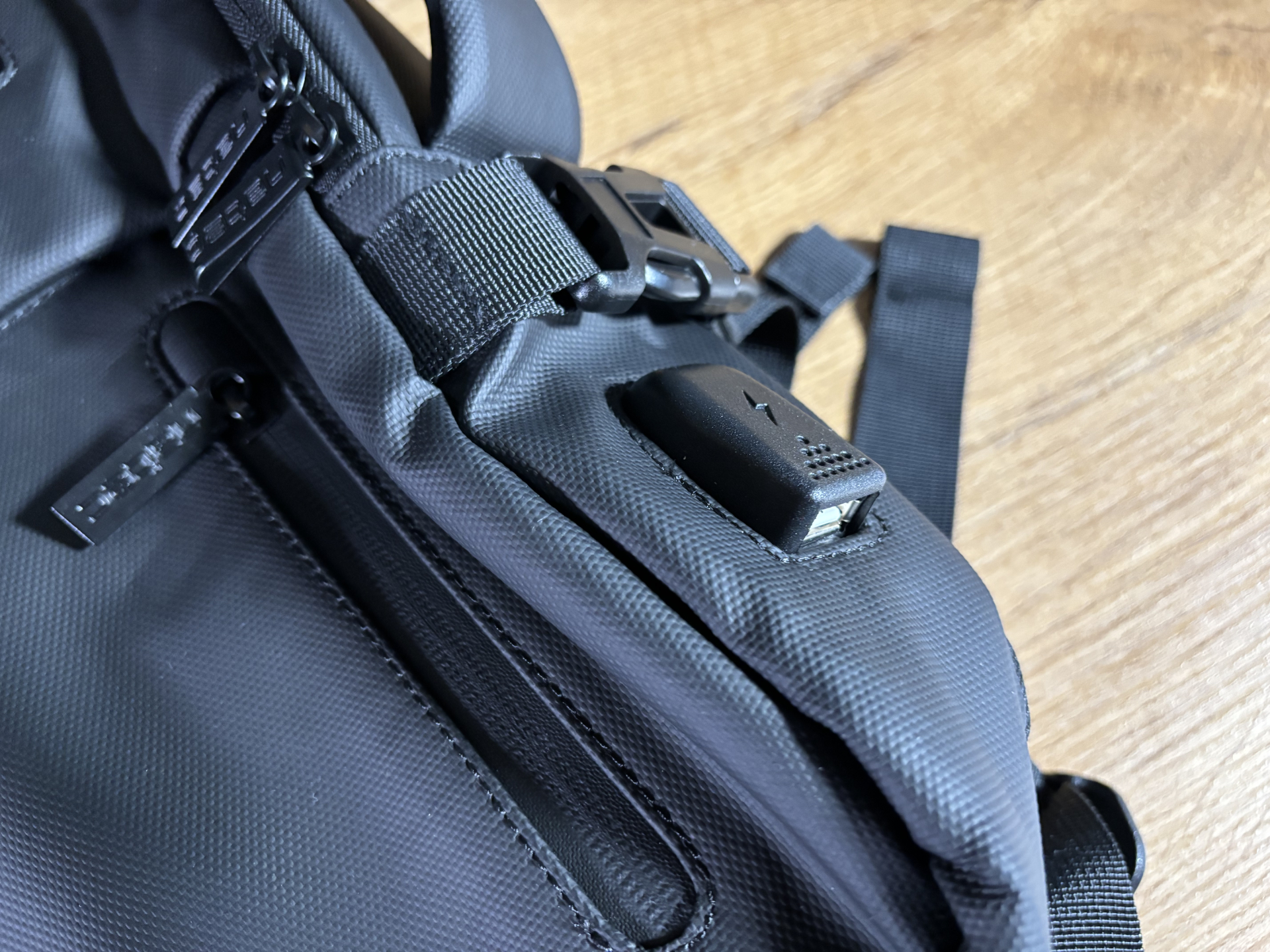 Cieszę się, że w konstrukcji nie znalazło się miejsce dla żadnej baterii. Dlaczego? Coraz częściej podkreśla się, że tego typu plecaki (ze wbudowanym zasilaniem) nie mogą być przewożone na pokładach samolotów jako bagaż podręczny. Jako że relatywnie często wylatuję na dzień, dwa lub trzy – zwracam na to szczególną uwagę. Tutaj chciałbym zaznaczyć ładowność plecaka. W kilku komorach bez przeszkód zmieścimy całkiem sporo ubrań, z obuwiem włącznie.