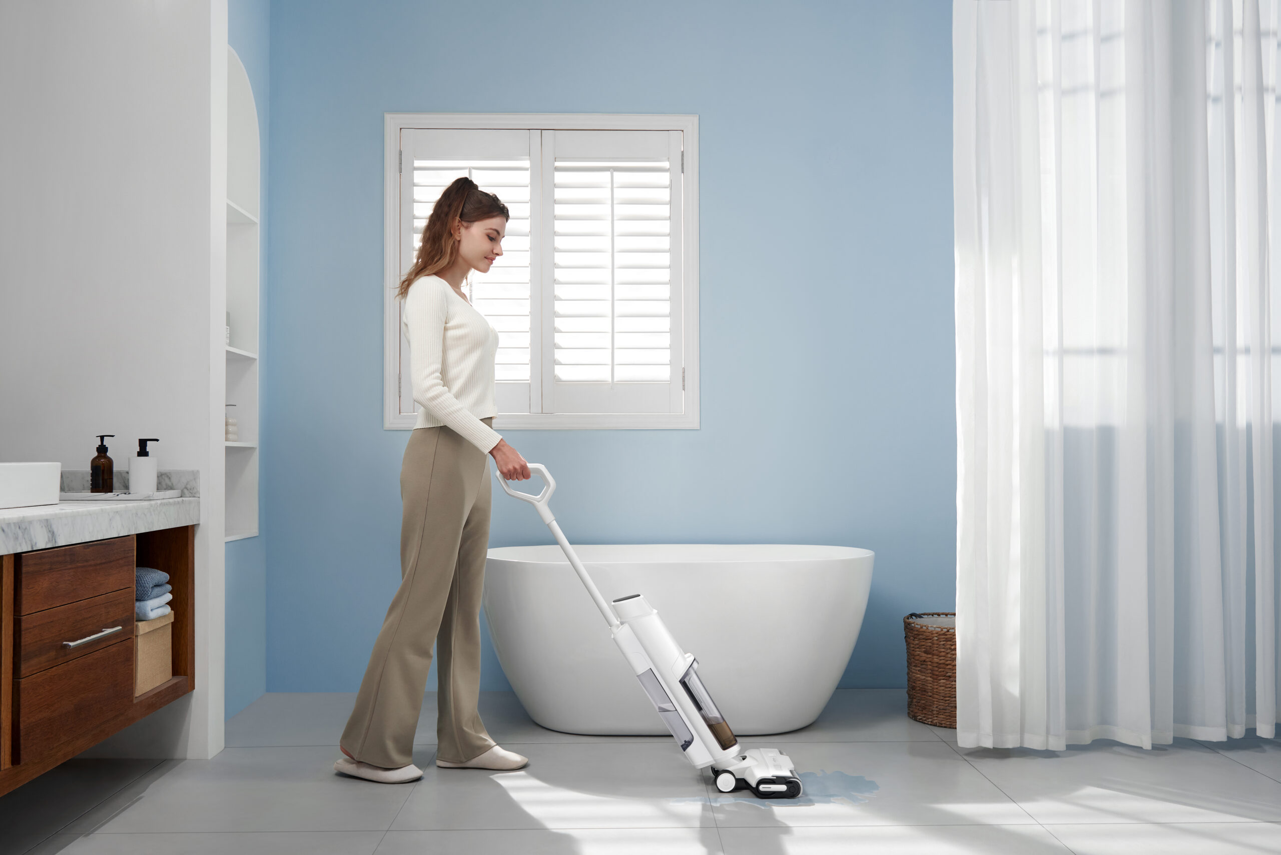 Mimo większej liczby funkcji wciąż jest to stosunkowo lekka konstrukcja – odkurzacz waży tylko 3,98 kg. Dla Waszej wygody i lepszej jakości sprzątania wyposażono go w innowacyjny system lie-flat. Dzięki niemu dosięga pod meble na płasko pod kątem 180°. K30 wyposażony jest w pojemny zbiornik na czystą wodę (600ml) oraz zbiornik na brudną wodę (500ml w pozycji stojącej i 350ml w pozycji płaskiej), a bateria o dużej pojemności zapewnia do 30 minut pracy w trybie mopowania.