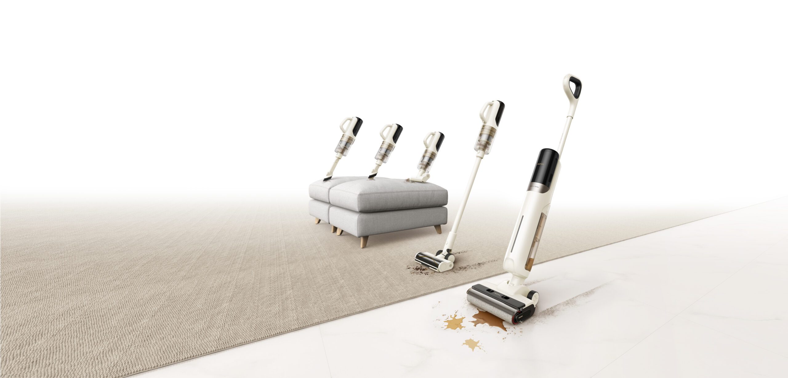 Zaczynamy od MOVA K10, czyli urządzenia łączącego funkcje odkurzacza i mopa, które nie ma sobie równych na naszym rynku pod względem ceny i tego, co oferuje. MOVA K10 łaczy w sobie możliwość czyszczenia różnych typów powierzchni, skuteczność w usuwaniu różnego rodzaju plam oraz splątanych włosów. MOVA K10 o została wyposażona w 3 tryby: standardowy świetnie sprawdzi się podczas codziennego sprzątania, tryb Turbo jest idealny do usuwania trudnych plam, a tryb ssania będzie najlepszym rozwiązaniem do czyszczenia bez płynów.