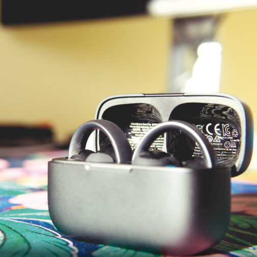 Do tego jakże cudownego wrażenia słuchowego przyczynia się z pewnością otwarta konstrukcja słuchawek, która sprawia, że każdy dźwięk dostaje odpowiednią przestrzeń do popisu, co stoi w zdecydowanej kontrze do tego, czego możemy doświadczyć podczas korzystania ze klasycznych słuchawek dousznych lub dokanałowych. Opisałbym wrażenie, jakie się ma podczas korzystania z AeroClip jako taka lekkość – dźwięk nie przytłacza, zamiast tego harmonijnie wpasowując się w dopływający do naszych uszu pejzaż dźwiękowy. Warto również dodać, że mimo swojej otwartości, słuchawki nie sprawiają, że wszyscy w naszym otoczeniu słuchają muzyki z nami – zjawisko znane jako „sound bleed” jest zredukowane do absolutnego minimum przy rozsądnych poziomach głośności.
