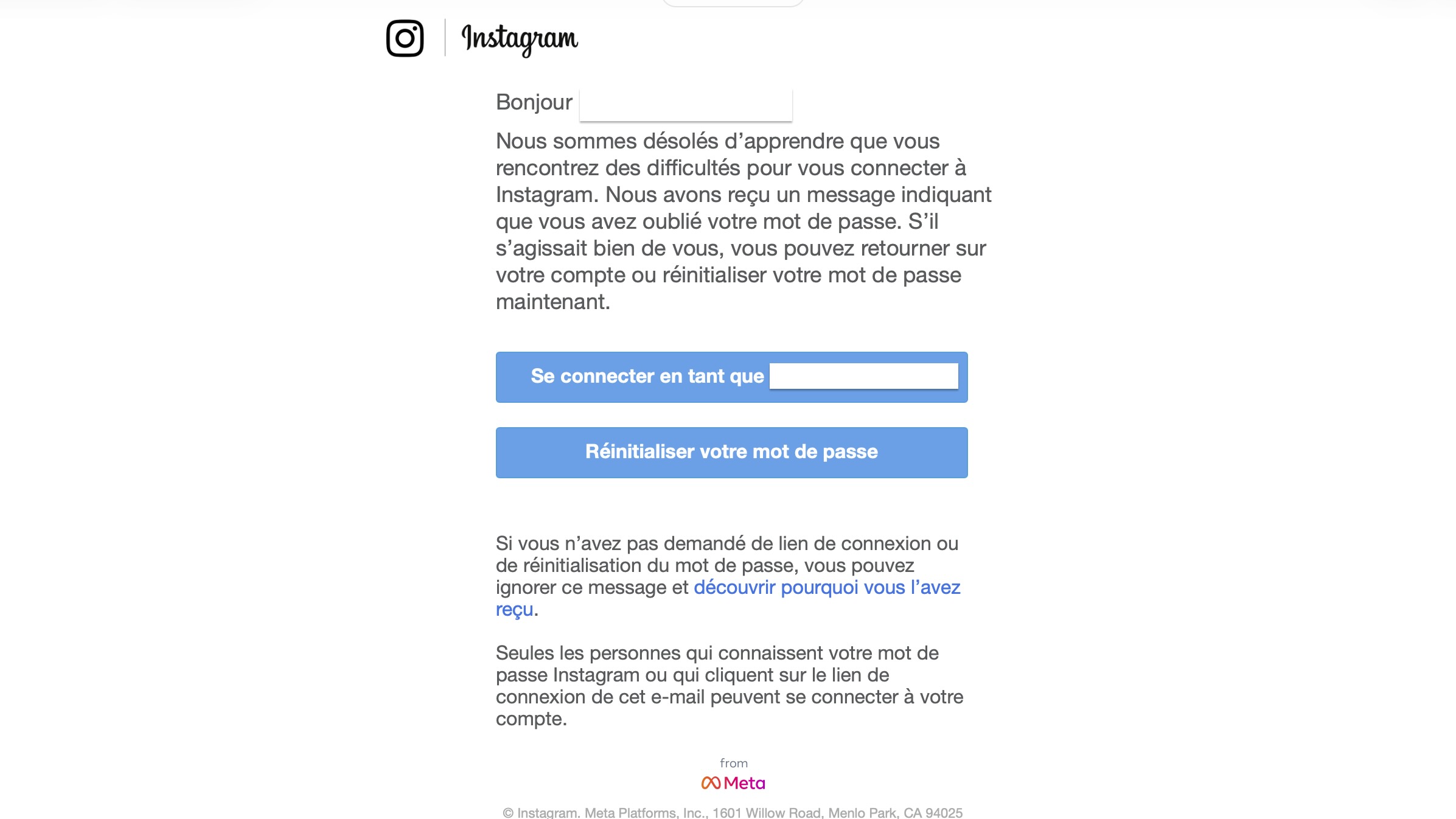 Ja także otrzymałem podejrzaną wiadomość dotyczącą resetu hasła do tej platformy, a co ciekawe e-mail był napisany po francusku. Wygląda więc na to, że znalazłem się w gronie użytkowników dotkniętych błędem zewnętrznego partnera Mety. Używam unikalnych adresów e-mail i ten konkretny alias podałem jedynie na Instagramie. Gorąco polecam takie rozwiązanie (oprócz stosowania unikalnych, długich haseł i 2FA), bo pozwala to łatwo deaktywować taki adres w razie wycieku, a ponadto zmniejsza ryzyko złapania się phishing, gdyby np. mail o zmianie hasła wyglądający jak prawdziwy wpadł na zwykłą skrzynkę.