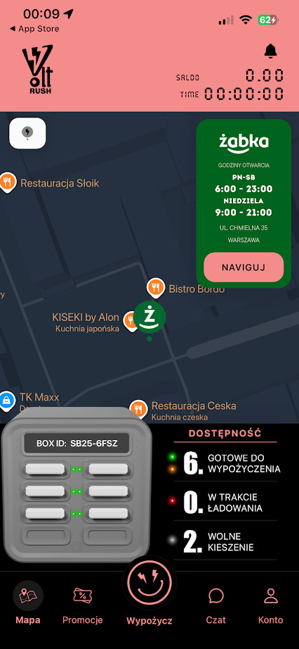 Żabka nawiązała współpracę z polską siecią wypożyczalni powerbanków Voltrush. Nowa usługa działa na razie na terenie Warszawy w ponad 200 punktach. Wystarczy pobrać aplikację Voltrush (ze sklepu Google Play lub App Store), zweryfikować konto za pomocą numeru telefonu i wyszukać najbliższy punkt. Nie musimy iść w ciemno. Od razu widzimy ile dostępnych jest wolnych powerbanków, ile się obecnie ładuje oraz podaje liczbę wolnych kieszeni. Możemy wypożyczyć urządzenie na 2 godziny, 6 godzin oraz całą dobę. Na start, Żabka uruchomiła promocja, a cennik prezentuje się następująco: